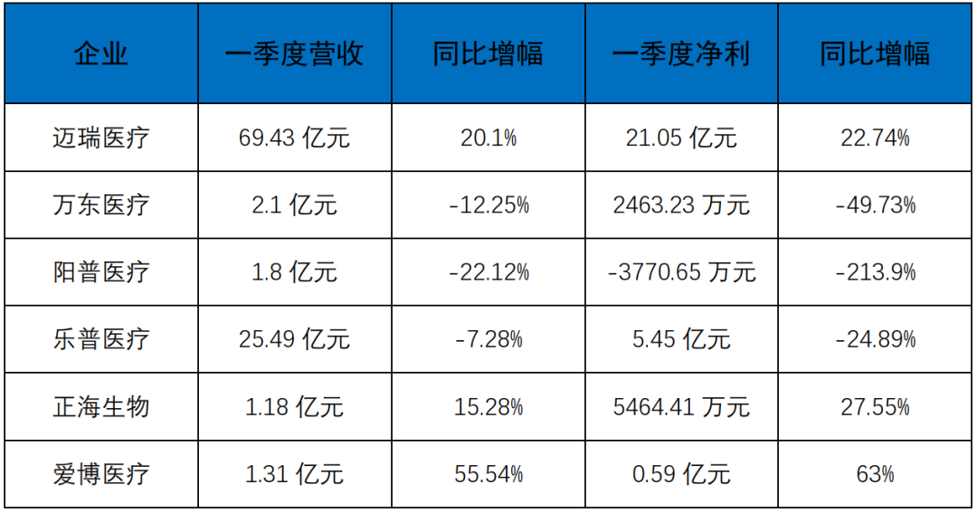近日,各家上市械企陸續發布一季度“成績單”,邁瑞醫療、萬東醫療、陽普醫療等醫械龍頭,幾家歡喜幾家愁,